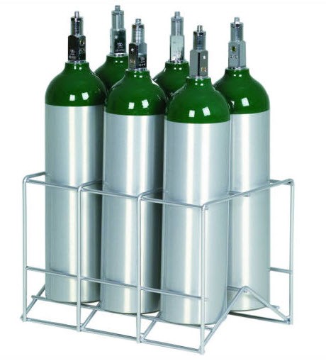 Storage of freestanding medical gas cylinders.